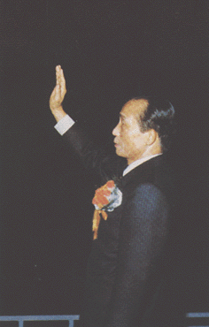 대통령은 깊게 눌러썼던 중절모를 벗었다.