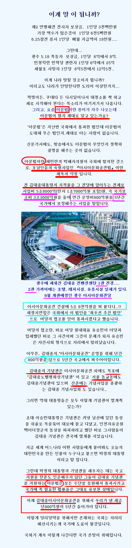 2.아시아문화궁전법-김대중기념관건립법-5조8천억 ..게다가 매년 운영비만 8천억. 황당법