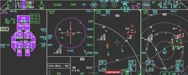 F-35B의 조종석 디스플레이의 모습. 최첨단 디지털 기술과 센서가 융합되어 상황인식 면에서